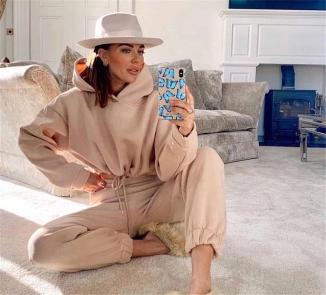 Women Solidcolour Casual Sports 2 Pieces Set Sweatshirt
